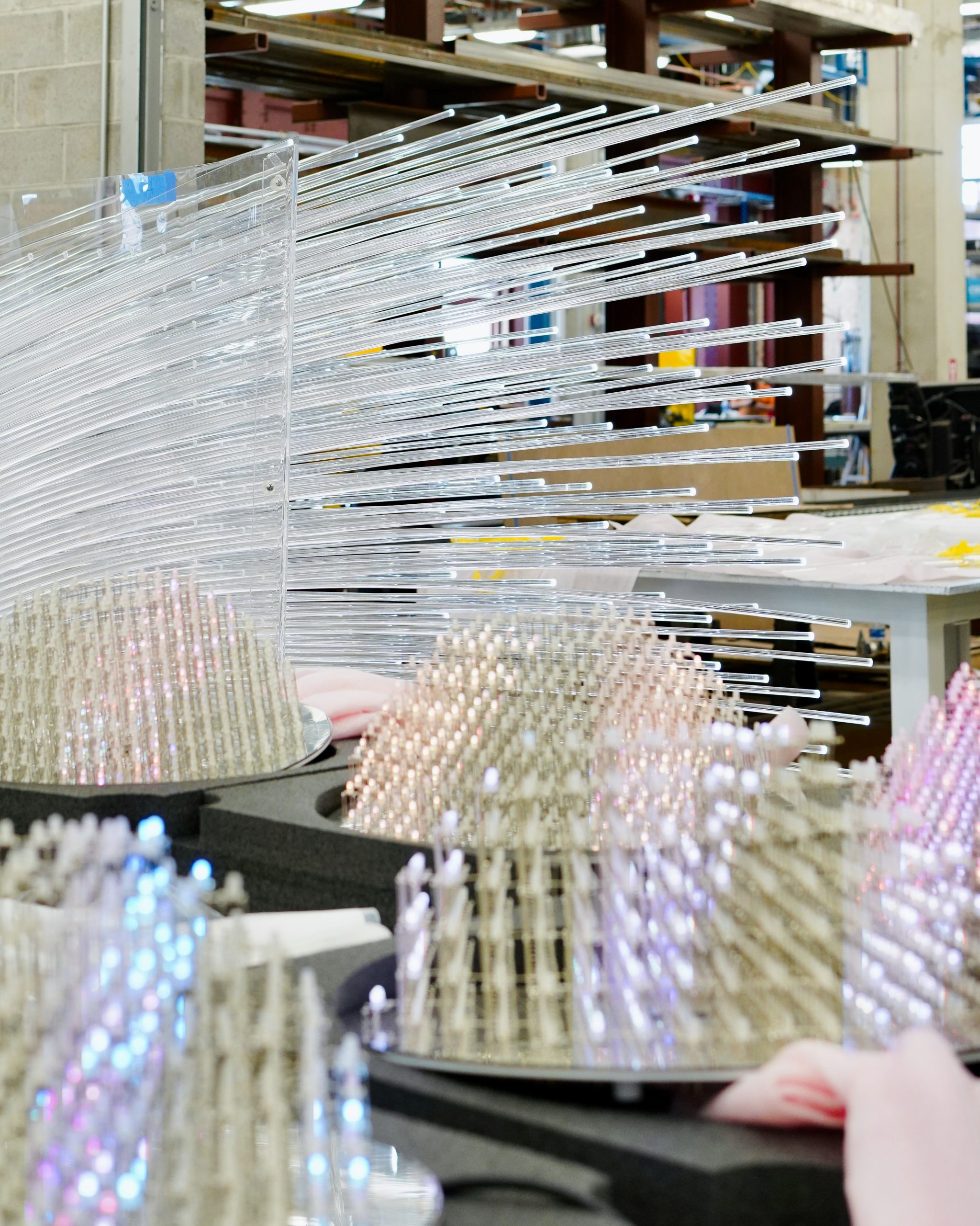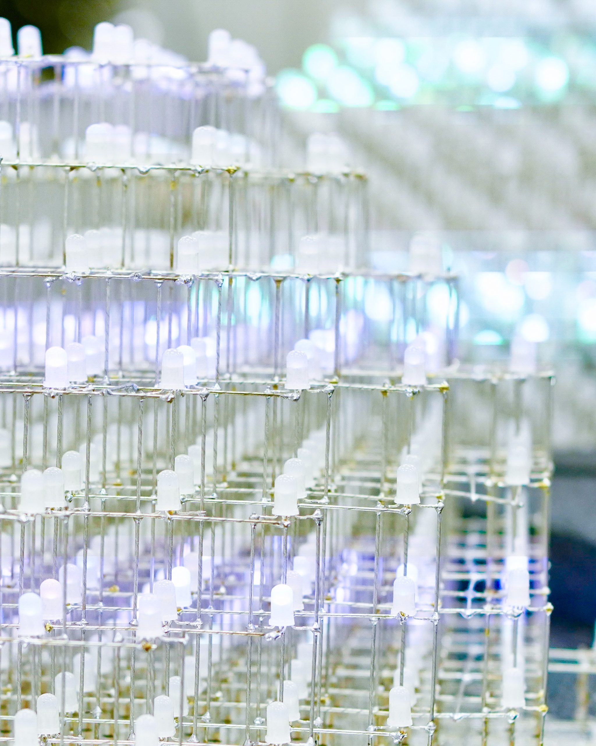An interactive AI light sculpture, me + you represents the coevolution between human wisdom and technological advancement—a primary theme of the Michigan Central Art Program. Originally created by Reddymade’s founder Suchi Reddy in 2021, this new iteration of me + you is a transformative experience that responds to the distinct historical architecture of the Station’s South Concourse.